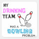 Bowling pins with words saying my drinking team has a bowling problem makes a nice sticker.