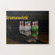 A puzzle made with a photo of a bowling ball crashing into the pins.