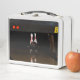 A lunch box featuring two photos of bowling pins.
