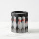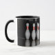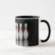 A mug featuring a photo of a rack of bowling pins.