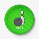 Bowling; Neon Green Stripes Paper Plate