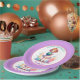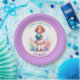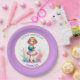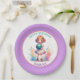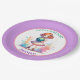 A cute anime girl's bowling themed Birthday Party personalised paper plates. In purple, pink and turquoise.