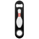 Bowling pin speed bottle opener for bowler. Cool Birthday or Holiday gift idea. Custom presents for dad, brother, uncle, husband, grandpa, boss, friend etc. Double sided print with name and logo. Black or custom colour.