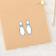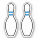 Stickers featuring two white bowling pins with blue stripes and black outlines.