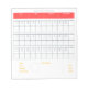 Default colours include white, red, golden yellow, and light/dark greys -- customise this notepad with your preferred colours!