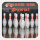 A sheet of stickers featuring a rack of bowling pins and the words Knock em Down. Can be customised.