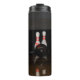 A thermal tumbler featuring a photo of a bowling ball about to knock down two bowling pins.
