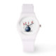 This watch features a bowling design, with a vector image of a black bowling ball, and four red and white bowling pins. The background colour can be customised if desired.