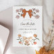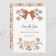 Elegant and coquette save the date card featuring hand drawn illustration of bows and flowers in earth tone terracotta colours. You can add a photo on the back.