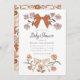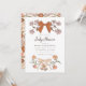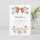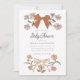 Coquette bow theme baby shower invitation card featuring hand drawn illustration of ribbons and flowers in earth tone colours.