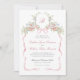 Bows and Wildflowers Wedding Invitation. This wedding invitation features a romantic monogrammed design framed by soft watercolor wildflowers and flowing pink ribbon bows. Delicate floral garlands and graceful greenery evoke the charm of a Victorian English garden, creating an elegant and timeless first impression. The overall look feels refined, romantic, and perfectly suited for a classic floral wedding.