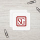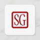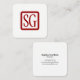 A square business card template with initials placed inside a 1.25in square with a bold 3mm frame. In this version the initials are in the Integrity bold font. Name and profession/job title along with telephone, email and website address in black on the reverse side on a white background, using variations of the Matt Antique font.