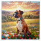 Boxer dog in beautiful field of flowers with sunset. Puzzles, puzzles in tins, planners, notebooks with this design in my stores. Add text to personalise.. Lots of pet and scenery designs in my stores. Add this design to other products. Add text.