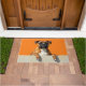 The burnt sienna orange background adds warmth and vibrancy, making it a perfect fit for welcoming entryways. Designed with extra space at the top and bottom, it allows easy personalization with names, welcome messages, or custom text—ideal for unique dog-themed doormats and thoughtful gifts.