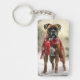 Boxer Dog in Snow Christmas Key Ring