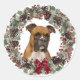 Boxer Dog Red Bow Pinecone Wreath Christmas Classic Round Sticker