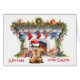 The front of this Christmas greeting card has an image of a Boxer Dog wearing a red and white Santa hat. The dog sits in front of a decorated fireplace, expectantly waiting for Santa Claus. The red text at the bottom says "Waiting for Santa". The text is customisable, as is all the inside text, so you may make it say whatever you'd like. Cute! See more Boxer images, along with dozens of other dog breed products, at Dog Village.