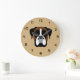 Anyone who has a Boxer dog at home will love this Boxer themed wall decor clock with numbers on the clock face surrounding the graphic of the canine friend. Use this as a kitchen clock, bedroom clock, or family room clock in style.