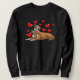 Boxer dog with stuffed animal and hearts sweatshirt