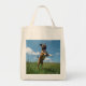 The printing came out very well, better than I had anticipated. The natural color fabric is sturdy with strong seams and comfortable handles. This tote fits easily over my shoulder. As it is filled, the bottom flattens out--very cool! I would buy this product again. This grocery tote holds a lot of groceries! The image quality was very good. The colors were a little darker than I had expected. The darkness may have been due to printing on a natural color fabric rather than on white. The cat design is attractively centered on the tote. The spirit of the design is very lively, just as it appears on the Zazzle website.