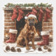 Bring some Christmas magic with this adorable Boxer sticker, showing the dog in a Santa hat sitting by a cosy fireplace. Stockings hung above, pine cones, and Christmas lights complete the holiday charm. Isolated and ready to bring festive cheer to your space!