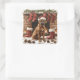Boxer in Santa Hat by Fireplace Square Sticker