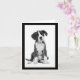 Send some Boxer love to friends and family. This cute canine card features a black and white photo of a Boxer puppy dog highlighted against a crisp white background with an black border.