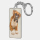 Boxer puppy on ivory cream backdrop. key ring
