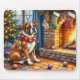 Boxer Sitting by Fireplace with Christmas Lights Mouse Pad