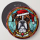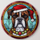 Boxer Stained Glass Christmas 6 Cm Round Badge