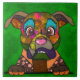 Unique Boxer dog face with bold, colourful abstract patterns on a blue background. Popular with dog lovers and pet lovers and rescue dog lovers.