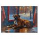 A heartwarming holiday scene featuring a dog sitting peacefully beside a window, surrounded by glowing Christmas lights. This cosy and festive design captures the spirit of the season, perfect for adding warmth and charm to any space. Ideal for dog lovers and holiday decor enthusiasts.