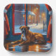 A heartwarming holiday scene featuring a dog sitting peacefully beside a window, surrounded by glowing Christmas lights. This cosy and festive design captures the spirit of the season, perfect for adding warmth and charm to any space. Ideal for dog lovers and holiday decor enthusiasts.