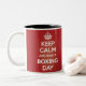 Black (interior) 11 oz Two-Tone Mug. KEEP CALM AND HAVE A BOXING DAY on BOTH sides. An ingenious way to suggest to someone you know that they might need a Boxing Day. Also... mugs do make extremely good gifts.