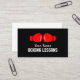 Boxing training lessons business card template. Red boxing gloves logo with custom name.