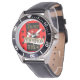 My husband loves the watch, he likes the dial, the graphics, the band, and it keeps perfect time.