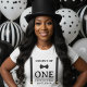 Celebrate your kid's first milestone as a distinguished gentleman with this cool 1st birthday party shirt for boy moms. Designed with formal suspenders and a fancy bowtie, this shirt is the perfect choice for mothers with upstanding one year old young man. Personalize the to create matching group shirts for the whole family.