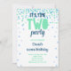 Boy 2nd Birthday TWO PARTY Confetti Blue Green Invitation
