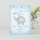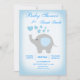 Blue Elephant blowing hearts for Boy Baby Shower Invitation. Add other matching baby shower accessories. Customise to your preference. Copyright © URBAN WILLOW & LITTLE PUMPKINS PIX and Decamp Studios