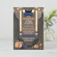 Rustic Fall Boy Baby Shower Invitation features Bow Tie, Burlap Bodysuit, Wood Background and Orange and Navy Blue Pumpkins Illustrations