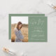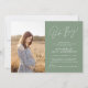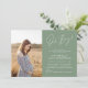 Boy baby shower script modern sage green elegant party photo invitation design. Ideal gender neutral design.