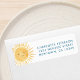 This baby shower return address label is decorated with a cute yellow watercolor smiling sun and blue typography.
