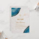 This elegant baptism invitation, recommended for a boy's christening, has blue agate geodes on the upper left and lower right corners. The background is white marble.