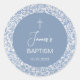 Boy Baptism Blue White Floral Pattern Christening Classic Round Sticker
