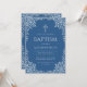 Boy Baptism Classic Blue Faux Silver Leaves Ornate Invitation