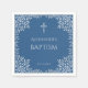 Boy Baptism Classic Blue Faux Silver Leaves Ornate Napkin