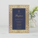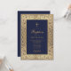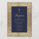 Boy Baptism Floral Gold Frame Navy Blue Elegant Invitation
