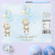 Boy bear baby shower chip bag wrappers with cute bear and balloons on a blue cloud background. You can personalise this boy bear baby shower chip bag wrapper by simply adding your details to the front. To assemble, wrap the flyer around your chip or snack size bag and secure with double sided or regular tape. Fits 1 ounce chip or snack bag - OR - you can leave the top open, slip in a sandwich bag, and add your own bulk snack mix and seal the top.