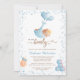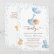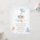 This adorable baby shower invitation features a boy teddy bear being flown by balloons with elegant script and modern text for your details. Back features teddy bear holding a balloon and text for a book request, or can be deleted for a clean look. Easy to customise by clicking "Personalise".
