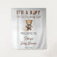 Cute sports-themed "It's A Boy and We Can Bearly Wait!" Teddy Bear American Football Player Boy Baby Shower backdrop design.